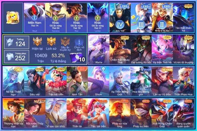 BÁN ACC LIÊN QUÂN SIÊU VIP - SKIN SS HỮU HẠN NHIỀU TƯỚNG TRÊN 500K
