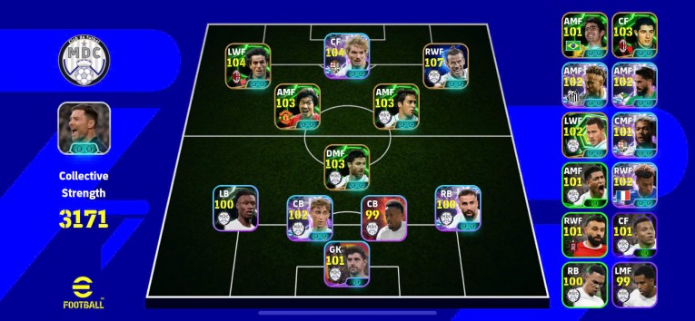 Balle bigtime 107, Donadoni 104, Woltemade 104, Park Ji Sung 103, Raul 103, Alonso 103, Carvajal show time, Huijsen 103, Kakak, Masoro 103, Neymar showtime 102, Isco 102, ......+ 3HLV