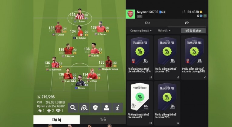 Giá Trị Đội Hình: LIVER TTT DƯ 13K TỶ