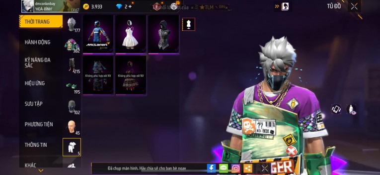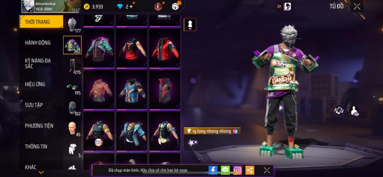 Acc chơi lâu, nhiều skin súng xịn, đầy đủ áo và phụ kiện nam. Đồ đủ dùng, đẹp mắt – vào chơi là chiến ngay!