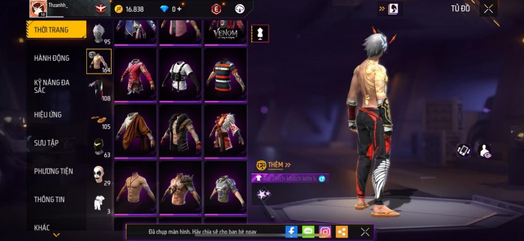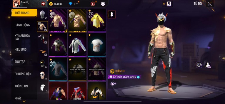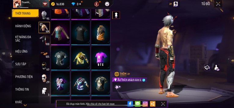 Acc siêu phẩmchơi lâu, nhiều skin súng xịn, đầy đủ áo và phụ kiện nam. Đồ đủ dùng, đẹp mắt – vào chơi là chiến ngay! Phù hợp anh em thích skin đẹp, súng mạnh, acc ổn định.