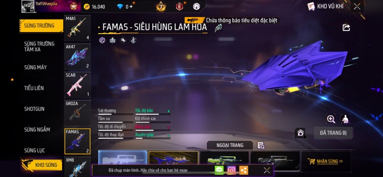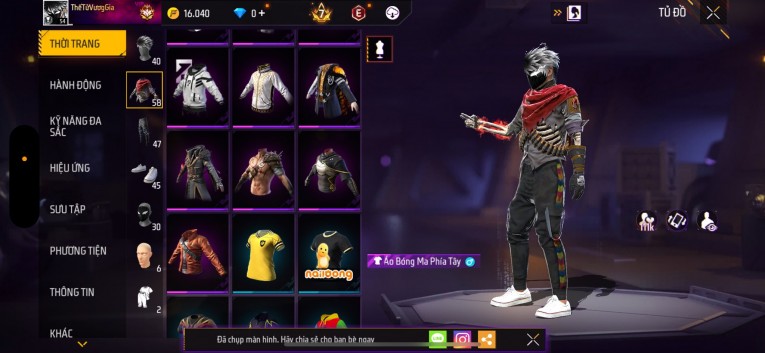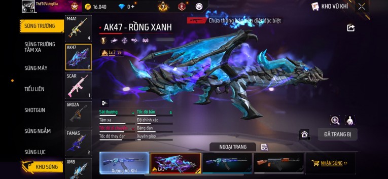 Acc chơi lâu, nhiều skin súng xịn, đầy đủ áo và phụ kiện nam. Đồ đủ dùng, đẹp mắt – vào chơi là chiến ngay! Phù hợp anh em thích skin đẹp, súng mạnh, acc ổn định.