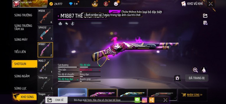 Acc chơi lâu, nhiều skin súng xịn, đầy đủ áo và phụ kiện nam. Đồ đủ dùng, đẹp mắt – vào chơi là chiến ngay! Phù hợp anh em thích skin đẹp, súng mạnh, acc ổn định.