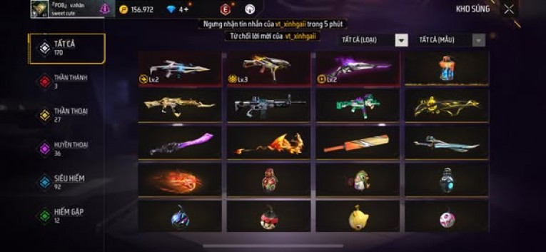 BÁN ACC FREEFIRE SIÊU PHẨM - VIP 8 GIÁ TRÊN 1 TRIỆU