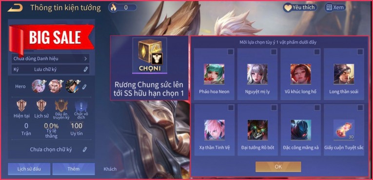BÁN ACC LIÊN QUÂN REG CỜ NHON - SKIN SS SSS HỮU HẠN